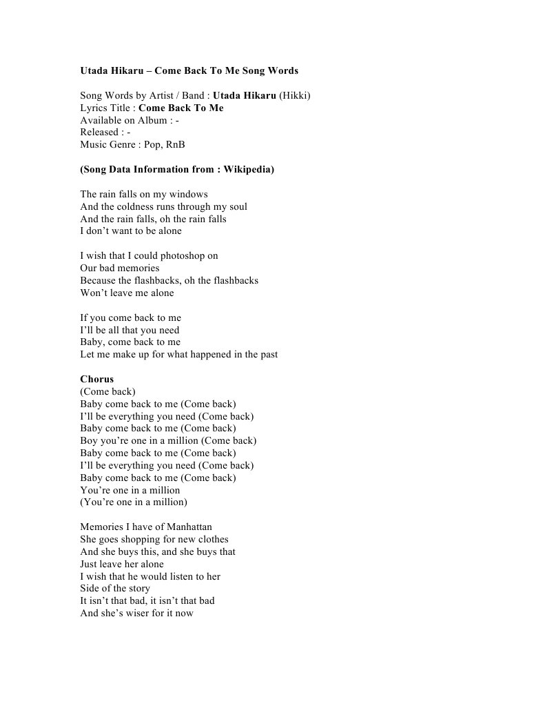 Baby come my way Come ride Its a nice day. Browse for Come On Me My Baby Come On Song song lyrics by entered search phrase. Tell me all the things.